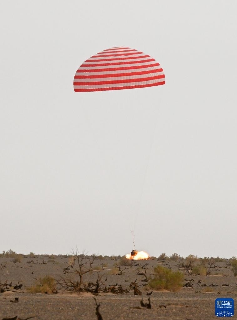 6月4日,神舟十五號載人飛船返回艙在東風著陸場成功著陸。新華社記者 連振 攝