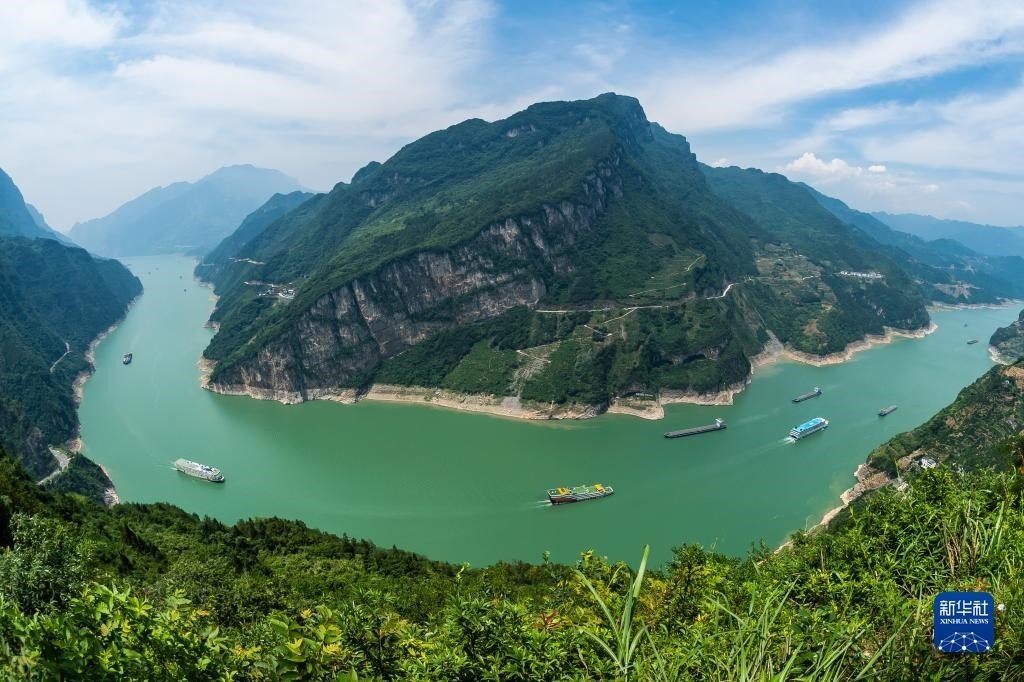 6月10日,船舶從湖北省宜昌市秭歸縣木魚島外沿水域駛過(無人機(jī)照片)。