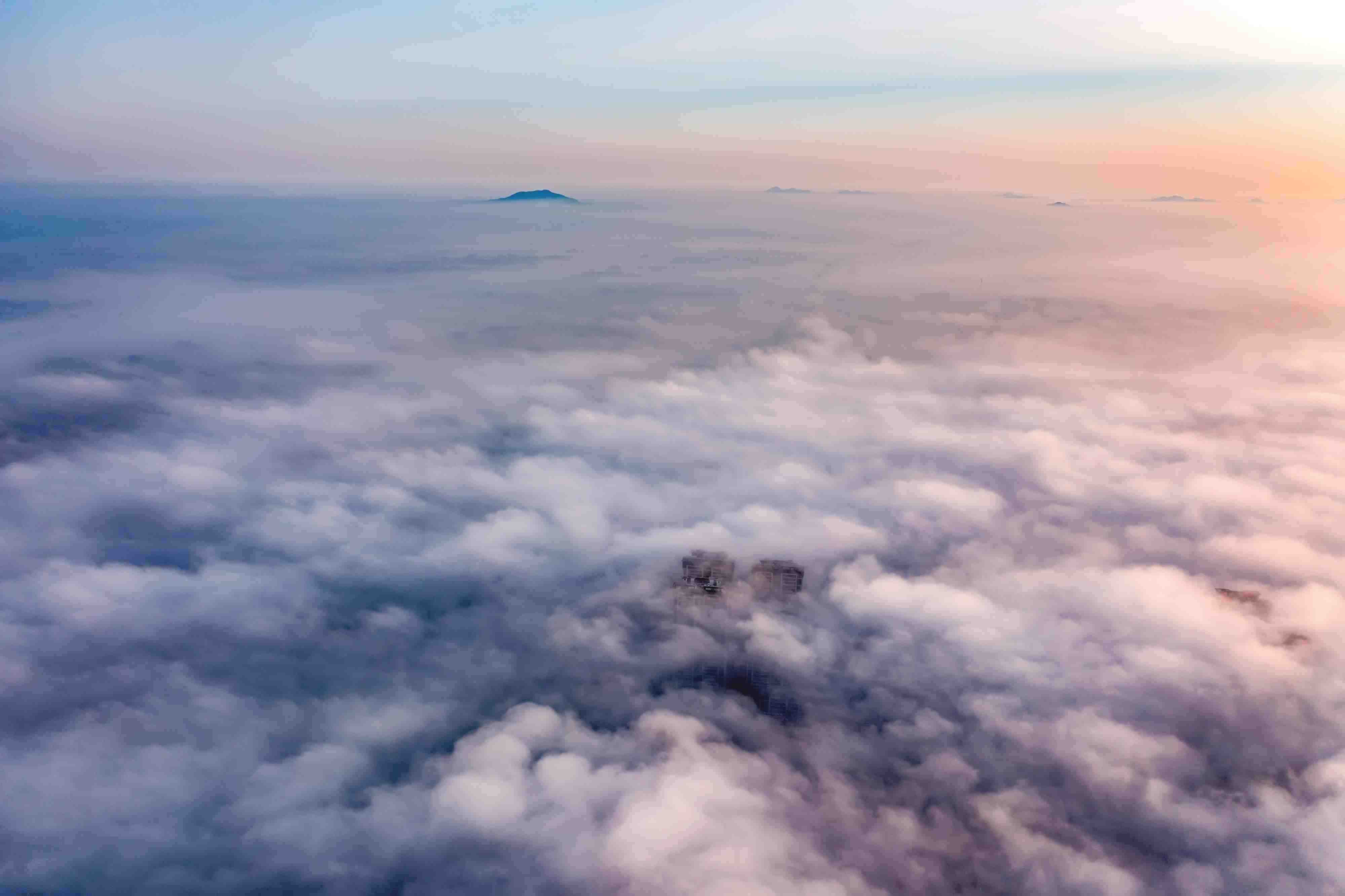 江蘇連云港:城市上空云霧繚繞