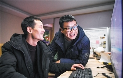 國家天文臺(tái)阿里觀測(cè)站駐站工程師尤顯龍(左)和同事唐鵬在討論觀測(cè)到的數(shù)據(jù)。新華社記者 晉美多吉攝