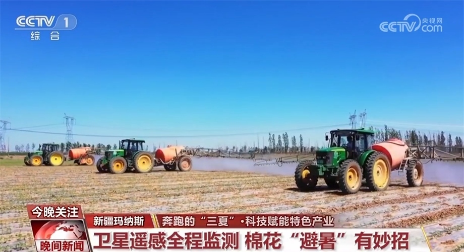 眼下,新疆昌吉瑪納斯縣的棉花正值現(xiàn)蕾期?,F(xiàn)蕾期指的是出現(xiàn)花蕾到開花這一段時(shí)間,這個(gè)時(shí)候棉株生長最快,然而持續(xù)的高溫給田間管理帶來考驗(yàn)。在瑪納斯縣樂土驛鎮(zhèn)的棉花田里,三臺(tái)裝有北斗導(dǎo)航系統(tǒng)的大馬力拖拉機(jī)正按照預(yù)先設(shè)定的線路進(jìn)行除草作業(yè)。這是農(nóng)技人員通過衛(wèi)星遙感棉花全程監(jiān)測技術(shù),幫種植戶制定的科學(xué)田管方案。