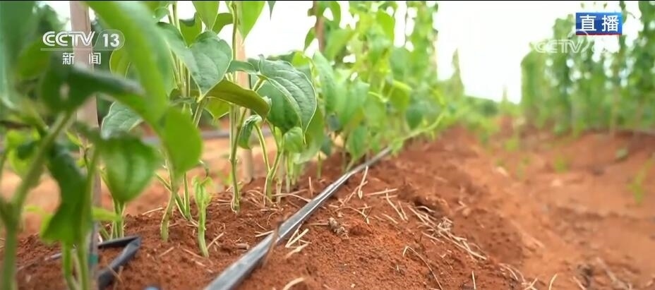另外,淮山喜歡濕潤和排水良好的環(huán)境,我們可以看到,在種植前都是這樣先用小型機械開好溝壟,一方面可以翻松泥土,一方面可以讓淮山生長在地勢比較高的地方,這樣水容易滲透進去,但又不會積水。目前,這里采用的是緩釋滴灌的模式,可以讓水慢慢從地表滲透至深層土壤和淮山根莖,精準灌溉,減少人工大水澆灌、頻繁多次澆灌造成的水資源浪費。
