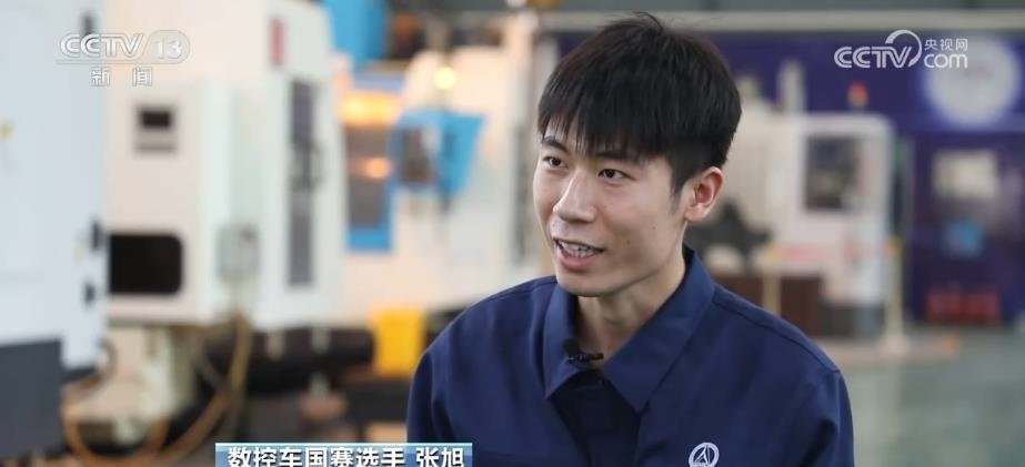 像王浩一樣渴望技能成才、技能報(bào)國的,還有22歲的小伙子張旭。他是航天材料及工藝研究所的一名技能工人,代表天津參加數(shù)控車(國賽精選)項(xiàng)目的比賽。