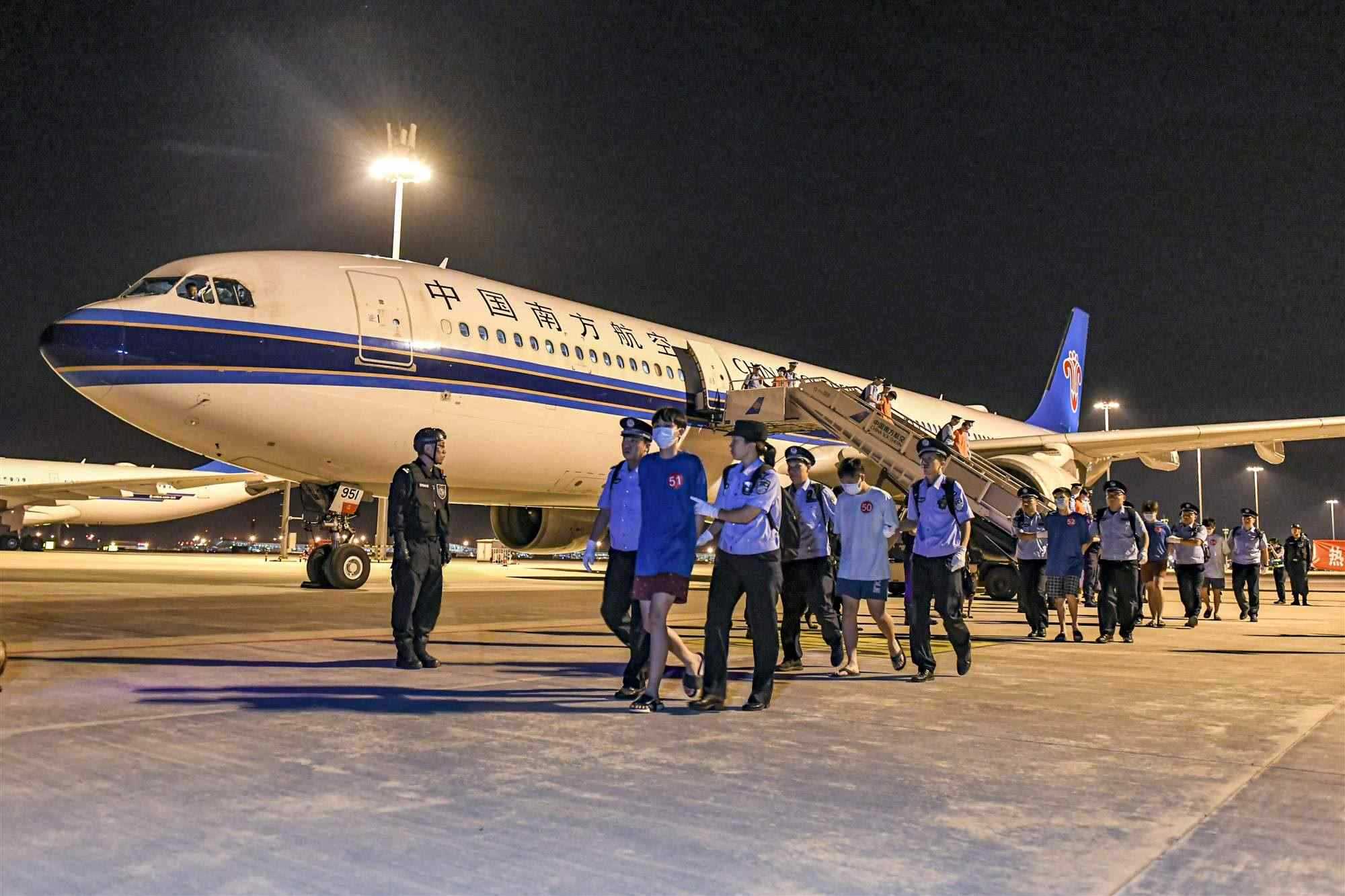 央視網(wǎng)消息:9月20日晚,隨著三架中國(guó)民航包機(jī)分別降落在北京大興國(guó)際機(jī)場(chǎng)和濟(jì)南遙墻國(guó)際機(jī)場(chǎng),前期中國(guó)警方和印度尼西亞警方通過(guò)警務(wù)執(zhí)法合作抓獲的153名實(shí)施跨境裸聊敲詐的電信網(wǎng)絡(luò)詐騙犯罪嫌疑人,被北京、山東公安機(jī)關(guān)從印尼押解回國(guó),涉及全國(guó)多個(gè)省市的百余起跨境裸聊敲詐案件成功告破。