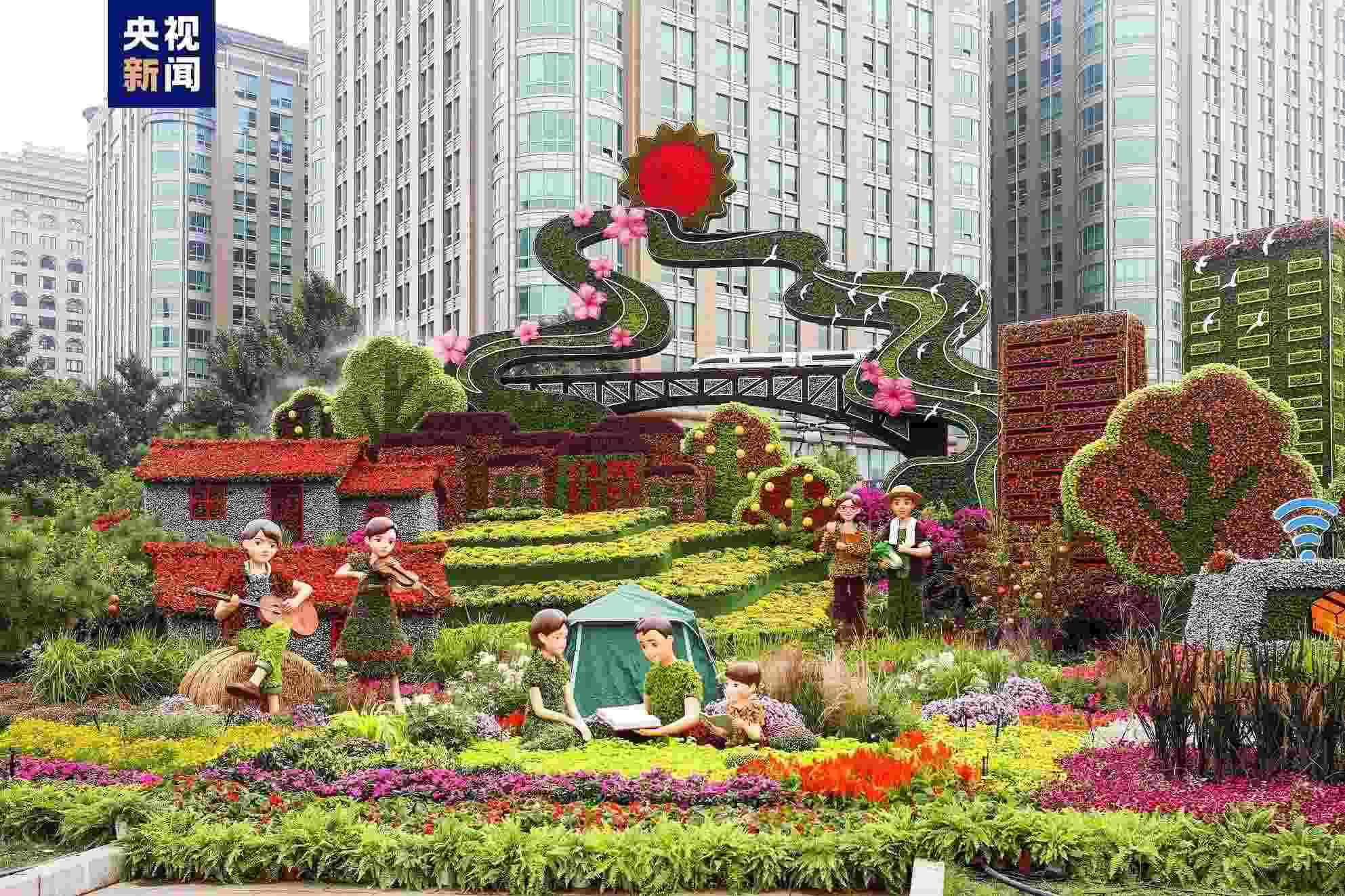 今年廣場花籃首次裝入象征豐收的五谷元素(水稻、小麥、小米、黃米、大豆),花籃內(nèi)的花卉等部件均使用阻燃、抗風(fēng)材料進行3D打印,有效保障安全性、穩(wěn)定性和觀賞性。廣場兩側(cè)綠地布置5050平方米吉祥如意花帶圖案,花球18個。長安街建國門至復(fù)興門之間布置10組不同主題的立體花壇,50多個國內(nèi)自主知識產(chǎn)權(quán)新品種、國外引進新品種和鄉(xiāng)土植物在長安街花壇中首次應(yīng)用,描繪出全面推進中華民族偉大復(fù)興的宏偉藍(lán)圖和人民群眾不斷提升的獲得感、幸福感的美好畫面。長安街、三里河路、阜成路、機場路四條重點道路布置容器花卉100組、地栽花卉2萬余平方米、花拱花球40余個,為市民游客營造花團錦簇的節(jié)日氛圍。