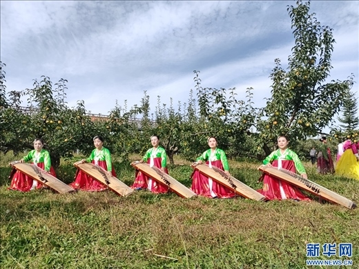 蘋果梨樹下的演奏 ?黃維攝/新華網(wǎng)發(fā)