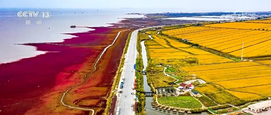 在遼寧盤錦,紅海灘景區(qū)的堿蓬紅草進入秋初后生長旺盛期,進入最佳觀賞季,用“顏值”引來不少游客,暢游其中宛如置身大自然的調色盤中。