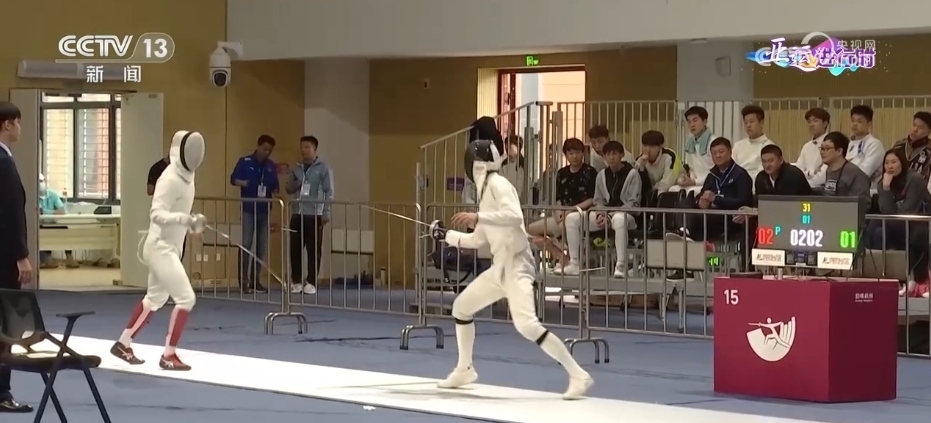 總臺記者 梁燁:擊劍是一個非常帥氣的運動,運動員身后為什么會有一個小“尾巴”?