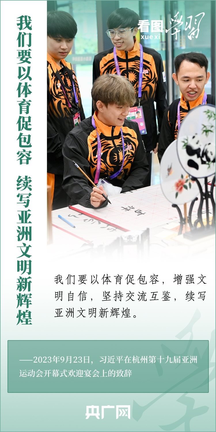 9月23日,第十九屆亞洲運動會在杭州隆重開幕。這屆參賽選手、項目數(shù)量、總體規(guī)模均創(chuàng)歷史新高的體育盛會,為亞洲各國各地區(qū)提供了以體育促和平、團(tuán)結(jié)、包容的廣闊舞臺。正如習(xí)近平主席在杭州第十九屆亞洲運動會開幕式歡迎宴會上的致辭中所說,亞洲運動會承載著亞洲人民對和平、團(tuán)結(jié)、包容的美好向往。