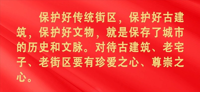 歷史文化是城市的靈魂,一個(gè)城市的歷史遺跡、文化古跡、人文底蘊(yùn),是城市生命的一部分。習(xí)近平總書記多次考察調(diào)研老城建筑和文化街區(qū),對(duì)傳承保護(hù)城市歷史文化遺產(chǎn)作出重要指示。