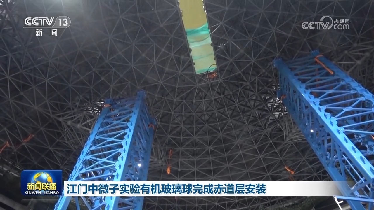 央視網(wǎng)消息(新聞聯(lián)播):大科學(xué)裝置江門中微子實(shí)驗(yàn)正在緊張建設(shè)中,位于地下700米的中心探測(cè)器日前完成了世界最大單體有機(jī)玻璃球赤道層的安裝,探測(cè)器整體工程過半。