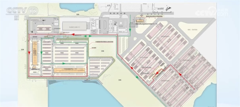海南洋浦保稅港區(qū)發(fā)展局局長(zhǎng) 張洪光:紅色的就是一線的流線,綠色的就是二線的流線,它們是不交叉的,如果需要查驗(yàn)的話,它們是可以共用這個(gè)查驗(yàn)平臺(tái)的。我做這樣的最終目的也是確保一線真正能夠放開,二線能夠真正管住。