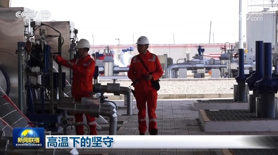 炎炎夏日,在能源保供現(xiàn)場、在物流運輸一線,也能看到很多忙碌的身影。新疆哈密的戈壁荒漠上,一群身穿防靜電工服的巡線員正奔忙在作業(yè)現(xiàn)場,守護著“西氣東輸”能源大動脈的運行。由于高溫天氣對設備零部件的損害較大,他們的巡檢往往安排在每天最熱的時段。