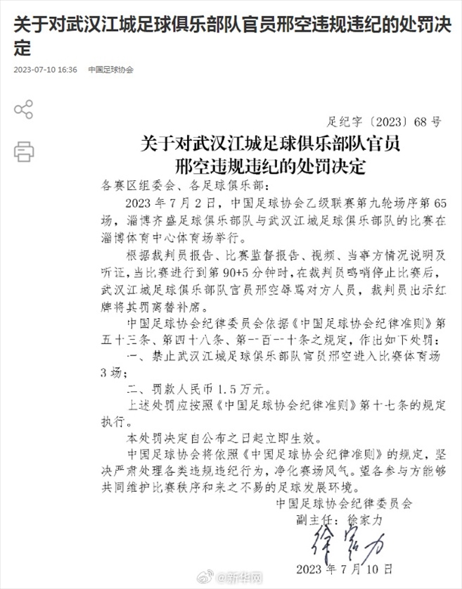 ·中國(guó)足協(xié)再開罰單,兩名俱樂部官員因違規(guī)違紀(jì)被罰。