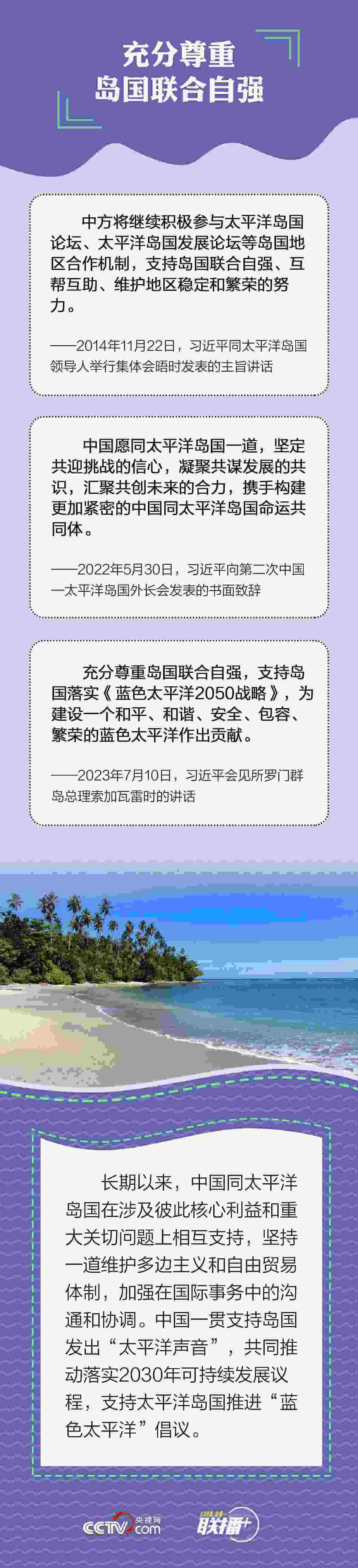 相互尊重是中國發(fā)展同太平洋島國關系的準則,共同發(fā)展是中國開展同太平洋島國合作的目標。央視網(wǎng)《聯(lián)播+》欄目與您一起學習了解。