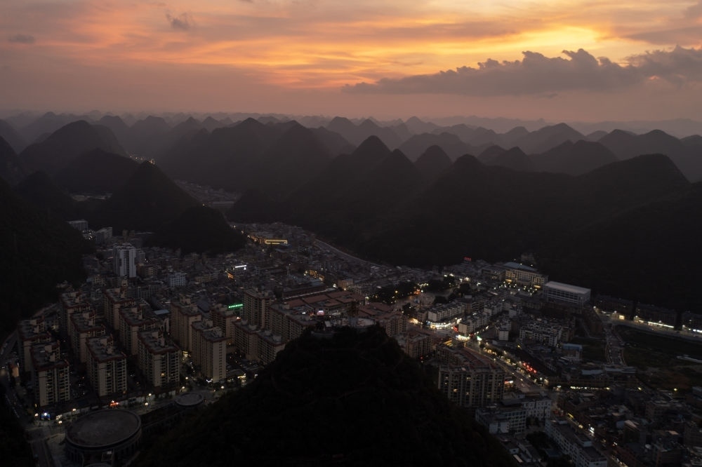 這是7月26日拍攝的夕陽(yáng)下的西疇縣城一景。新華社記者 陳欣波 攝