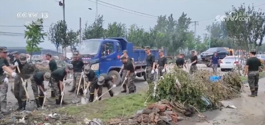 汛情就是命令。連日來(lái),解放軍和武警部隊(duì)官兵緊急投入防汛救災(zāi)工作,全力搜救失聯(lián)、被困人員,全力保障人民群眾生命財(cái)產(chǎn)安全。在河北邢臺(tái),南和區(qū)部分村鎮(zhèn)被淹,洪水退去后,大量泥沙沉積,部分村鎮(zhèn)出現(xiàn)道路阻斷。8月4日,中部戰(zhàn)區(qū)陸軍某部出動(dòng)500名官兵,支援當(dāng)?shù)貫?zāi)后清理工作。高溫悶熱的天氣下,官兵們揮汗如雨,逐條道路對(duì)斷枝雜物、沉積淤泥進(jìn)行清理。