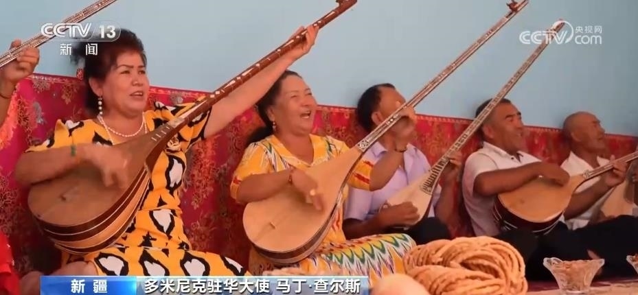 駐華使節(jié)們走進(jìn)喀什古城的街市巷陌,感受當(dāng)?shù)鬲?dú)特的民族文化;在克孜爾千佛洞,領(lǐng)略跨越千年的石窟藝術(shù);來(lái)到新疆民間手工樂(lè)器制作第一村庫(kù)車(chē)市新和縣加依村,同當(dāng)?shù)匕傩找黄疠d歌載舞;觀看非遺項(xiàng)目十二木卡姆等一系列活動(dòng),讓使節(jié)們感嘆,新疆少數(shù)民族傳統(tǒng)文化和生活習(xí)俗得到了充分保護(hù)。