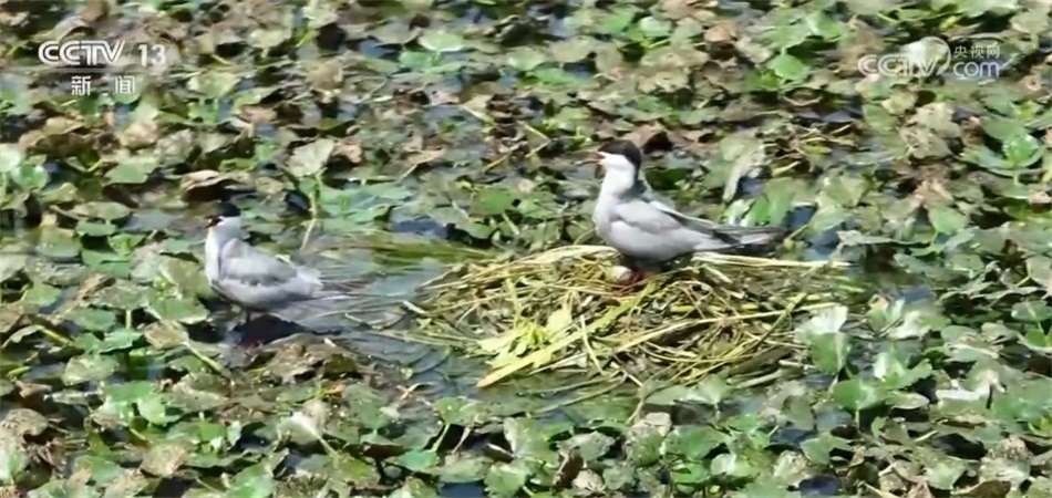 比如,兩地工作人員實(shí)現(xiàn)了聯(lián)合巡河、管護(hù)、治理。元蕩湖生態(tài)岸線的相關(guān)建設(shè),包括我所在的這個(gè)公園和步行橋也是兩地統(tǒng)一審批、接力建設(shè)起來的。目前,元蕩湖水質(zhì)已經(jīng)達(dá)到國家考核目標(biāo),生態(tài)岸線占比超過80%。在湖心的位置有一處水草聚集區(qū)域,船是不會(huì)靠近的,這是人為劃定的水上鳥兒的保育區(qū),能看見不少水鳥在那里嬉戲飛翔。鏡頭拉近,有的鳥兒已經(jīng)在這里筑巢產(chǎn)卵,把家安在了元蕩湖,水質(zhì)好不好,鳥兒最有發(fā)言權(quán)?,F(xiàn)在,元蕩湖在水系連通、河道清障、岸坡整治、水源涵養(yǎng)等方面實(shí)現(xiàn)了統(tǒng)一推進(jìn)。