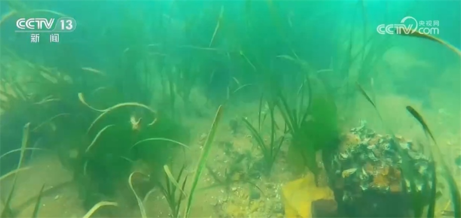 河北省近海生態(tài)修復(fù)工程技術(shù)研究中心負(fù)責(zé)人 張振海:現(xiàn)在看到的這個畫面,是我們“貝藻礁生態(tài)系統(tǒng)重構(gòu)技術(shù)”的實(shí)時景象,過去海底不是這樣的,海底整個是一片荒漠化的,在貝藻礁生態(tài)系統(tǒng)創(chuàng)新以后,海藻逐漸茂盛起來,海洋生物物種增加了十幾種,海洋生物總量提高了四十倍以上。