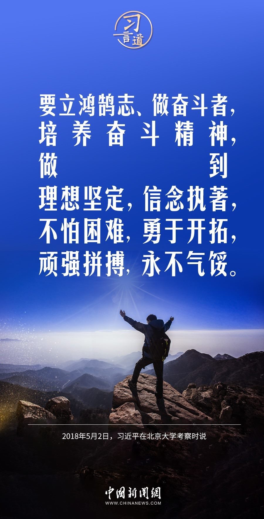 少年強(qiáng)、青年強(qiáng)則中國強(qiáng)。習(xí)近平總書記在多個(gè)場合寄語少年、青年們,要立鴻鵠志、做奮斗者。