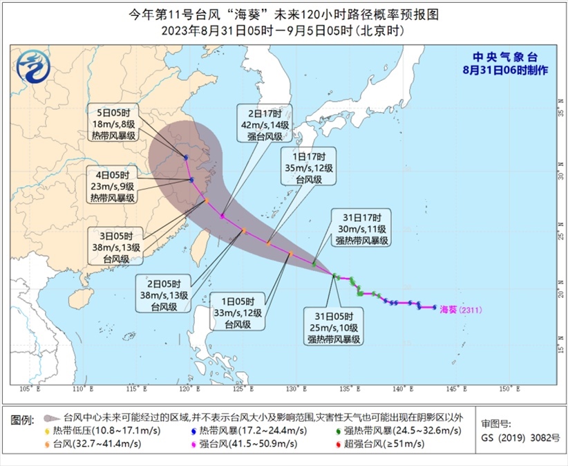預(yù)計(jì),“蘇拉”將以每小時(shí)10公里左右的速度向西北方向移動,逐漸向廣東東部一帶沿??拷?,強(qiáng)度緩慢減弱,并將于9月1日下午至夜間在廣東惠來到香港一帶沿海登陸(強(qiáng)臺風(fēng)級或超強(qiáng)臺風(fēng)級,45~52米/秒,14~16級),也有可能在廣東東部近岸海面向西偏南方向移動。中央氣象臺今晨升級發(fā)布臺風(fēng)紅色預(yù)警。
