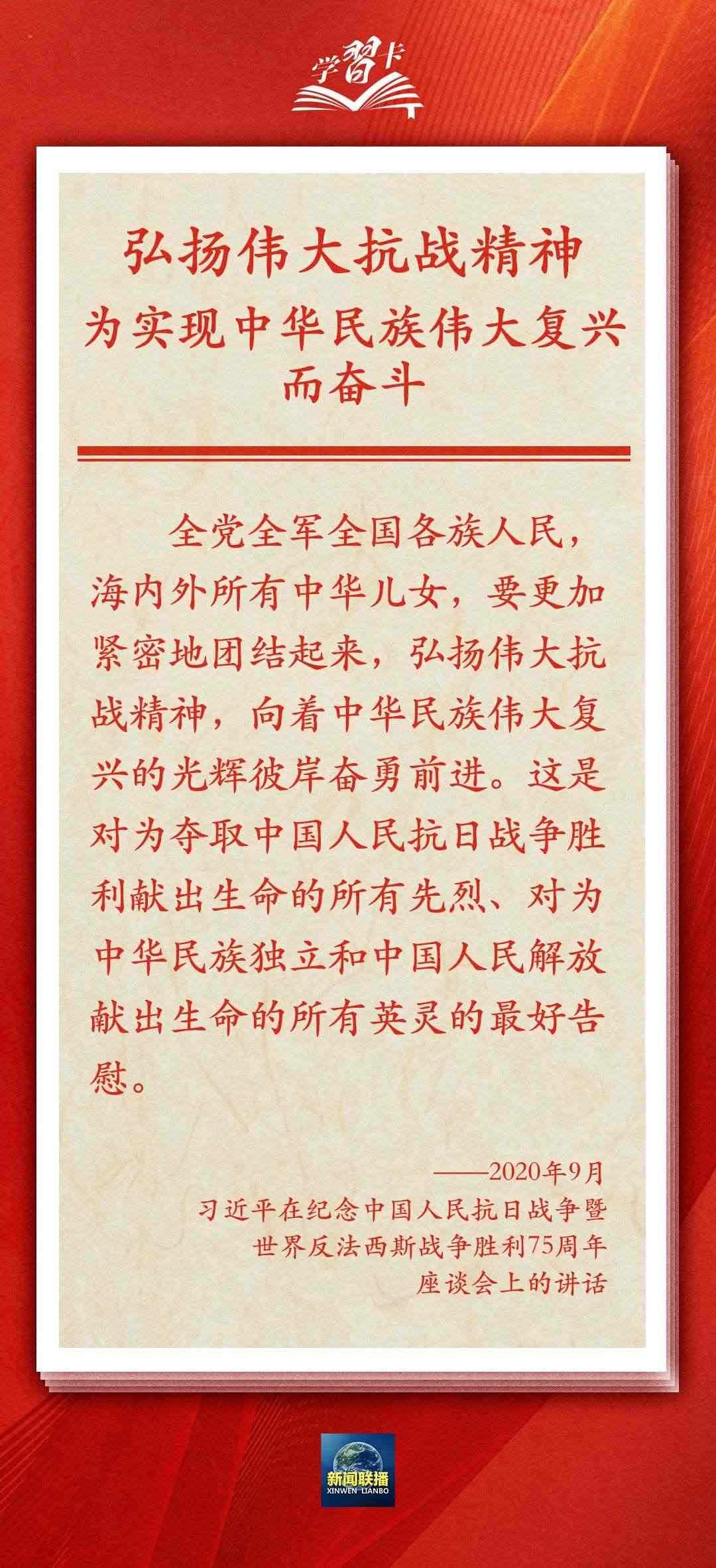 習近平總書記曾在多個重要場合談及中國人民抗戰(zhàn)歷史,強調弘揚偉大抗戰(zhàn)精神。偉大抗戰(zhàn)精神的內涵是什么?一起學習↓