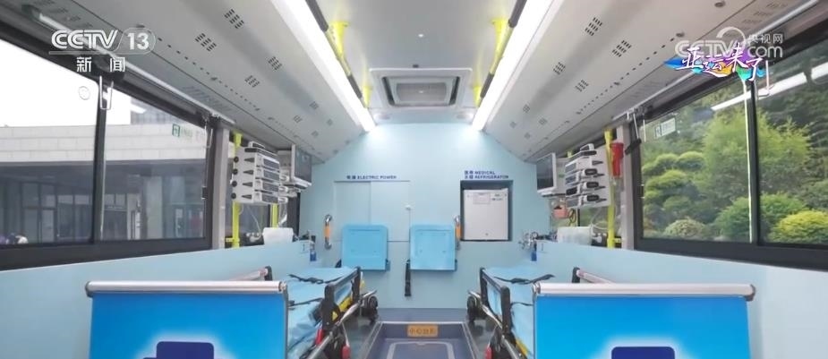 大型5G移動(dòng)急救復(fù)蘇單元由兩輛公交車改裝而成,包含1輛急救治療車和1輛急救指揮車。急救治療車內(nèi)設(shè)有2個(gè)擔(dān)架位和1個(gè)搶救床位,可同時(shí)轉(zhuǎn)運(yùn)多名危重病人。車內(nèi)配備了功能全面、集成度高的急救和轉(zhuǎn)運(yùn)平臺(tái),可以在車內(nèi)開(kāi)展體外呼吸循環(huán)支持和緊急救命性手術(shù)等復(fù)雜急救手段。