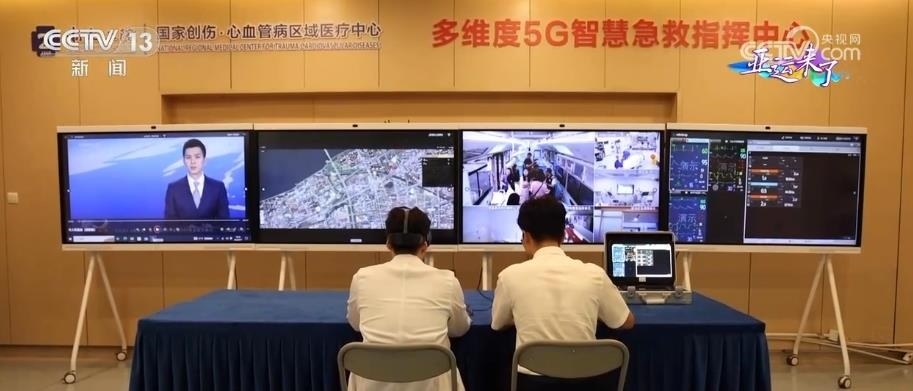 在大型5G移動(dòng)急救復(fù)蘇單元工作時(shí),院內(nèi)的5G急救指揮中心的電子大屏上,能夠?qū)崟r(shí)查看急救治療車內(nèi)的情況、患者監(jiān)護(hù)生命體征、車輛實(shí)時(shí)位置等信息,并進(jìn)行實(shí)時(shí)的線上指導(dǎo)。