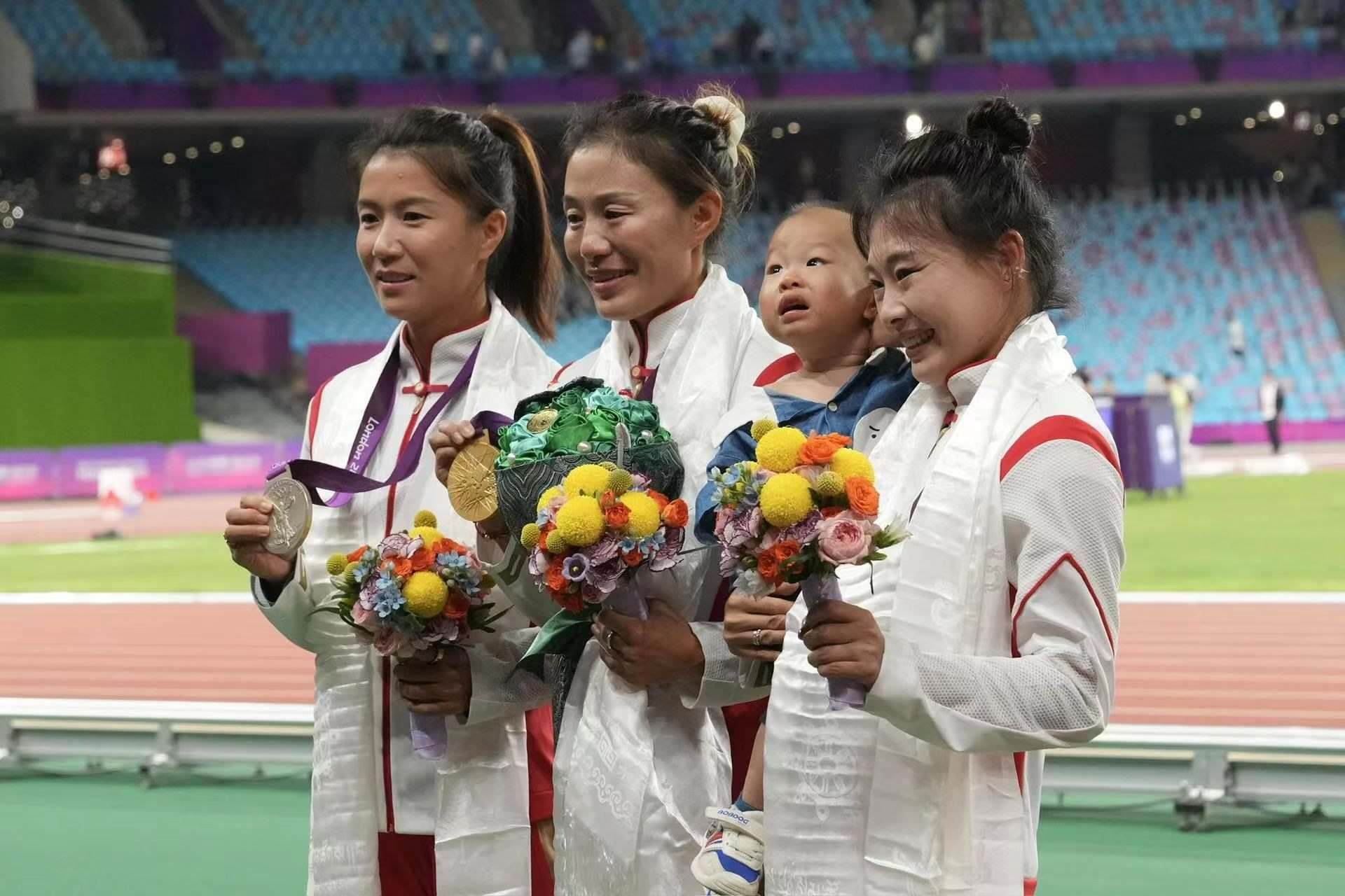 補發(fā)現(xiàn)場,首先頒發(fā)的是男子4×100米接力銅牌。四位中國小伙子笑著走上銅牌領(lǐng)獎臺,接受頒獎。隨后的競走頒獎儀式上,在三位得獎運動員獲頒獎牌后,《義勇軍進(jìn)行曲》奏響,三面五星紅旗冉冉升起,切陽什姐眼中涌動著晶瑩的淚花。