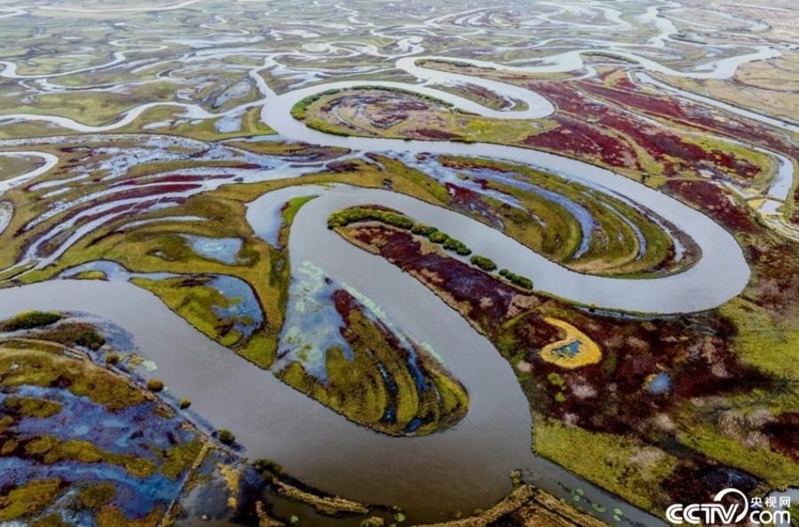 黑龍江省雙鴨山市饒河縣境內的撓力河濕地水草豐美,色彩斑斕,一派生態(tài)之美的迷人景象。