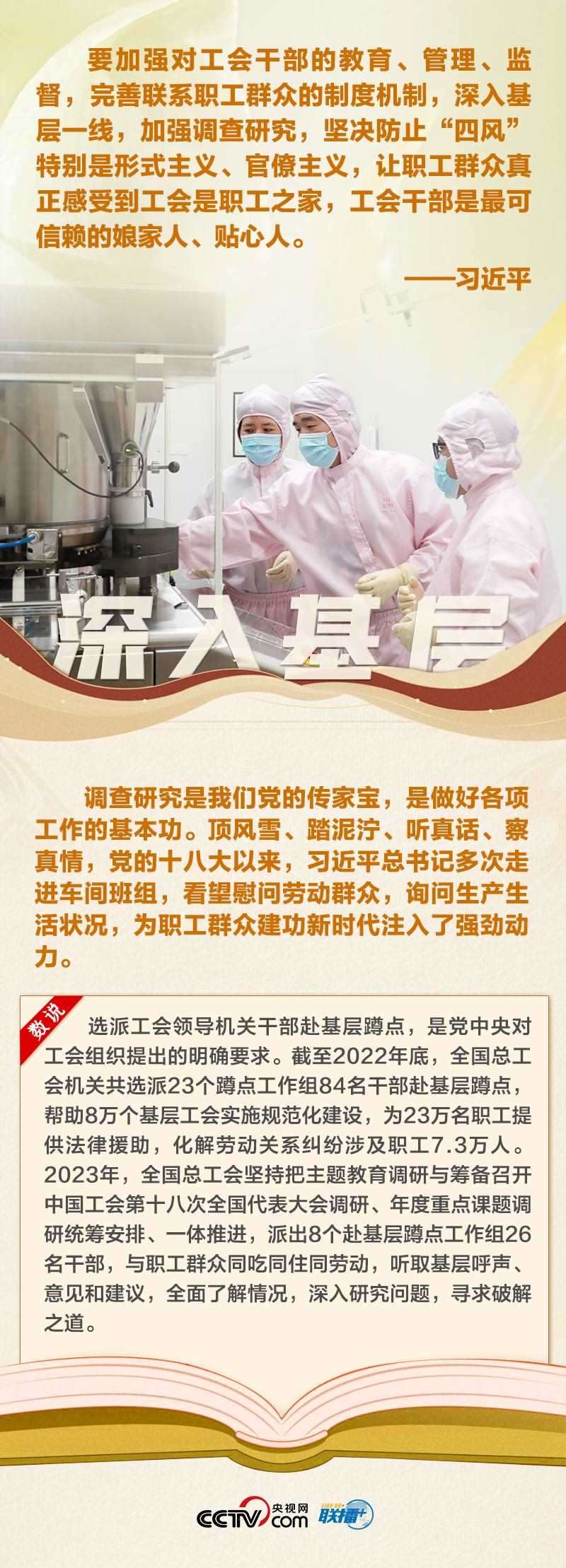 工人階級是我們黨最堅實最可靠的階級基礎(chǔ),工運事業(yè)是黨的事業(yè)的重要組成部分,工會工作是黨治國理政的一項經(jīng)常性、基礎(chǔ)性工作。黨的十八大以來,習近平總書記多次出席勞動者活動,同普通工人談心,給勞?;匦牛瑸閺V大勞動群眾煥發(fā)工人階級主人翁精神注入強勁動力。