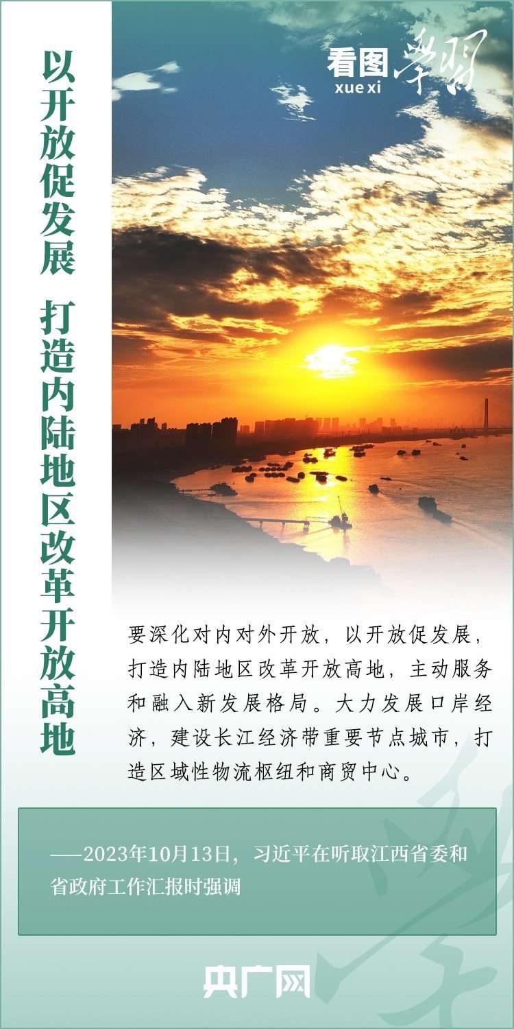 10月10日至13日,習(xí)近平總書記在江西九江、景德鎮(zhèn)、上饒等地,深入長(zhǎng)江岸線、企業(yè)、歷史文化街區(qū)、農(nóng)村等進(jìn)行調(diào)研。總書記強(qiáng)調(diào),江西要著眼高質(zhì)量發(fā)展、綠色發(fā)展、低碳發(fā)展等新要求,解放思想、開拓進(jìn)取,揚(yáng)長(zhǎng)補(bǔ)短、固本興新,努力在加快革命老區(qū)高質(zhì)量發(fā)展上走在前、在推動(dòng)中部地區(qū)崛起上勇爭(zhēng)先、在推進(jìn)長(zhǎng)江經(jīng)濟(jì)帶發(fā)展上善作為,奮力譜寫中國(guó)式現(xiàn)代化江西篇章。一起來學(xué)習(xí)!
