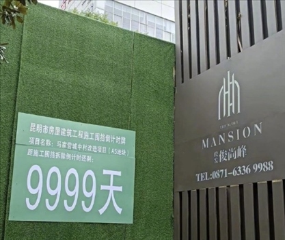·昆明一施工圍擋上張貼“拆除倒計時9999天”,官方回應(yīng):系工作失誤,已及時撤下。