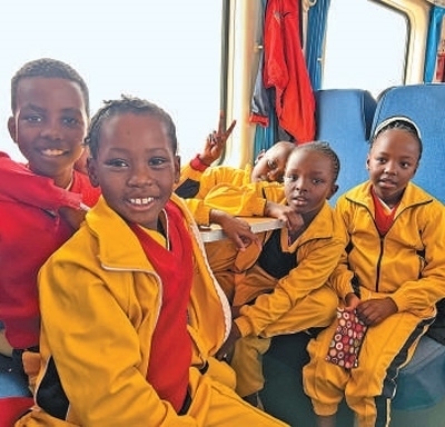 蒙內(nèi)鐵路是中國(guó)與肯尼亞共建“一帶一路”標(biāo)志性工程。圖為肯尼亞學(xué)生高興地乘坐列車(chē)出行。本報(bào)記者 張志文攝