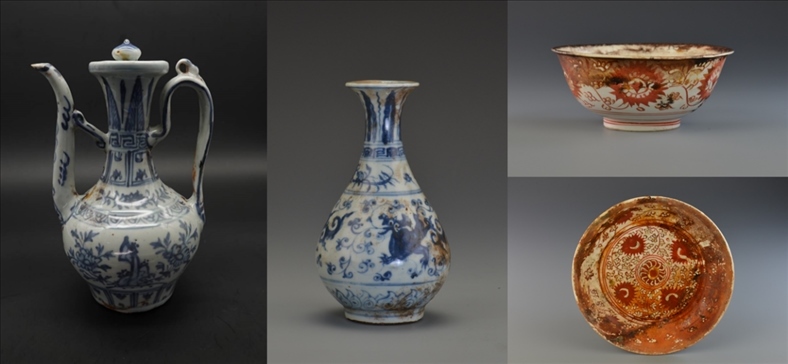 發(fā)掘出水文物標(biāo)本約1.7萬件,主要為龍泉青瓷和陶罐、鉛錘、印章等船上生活、航海相關(guān)文物。其中龍泉青瓷數(shù)量達(dá)到1.6萬余件,器形包括碗、盤、碟、盞、洗、缽、香爐和高足杯等,年代為元代晚期,為典型的外銷貿(mào)易瓷。結(jié)合溫州朔門古港的考古發(fā)現(xiàn),推測該沉船可能是從溫州港出海前往東南亞的民間貿(mào)易商船。