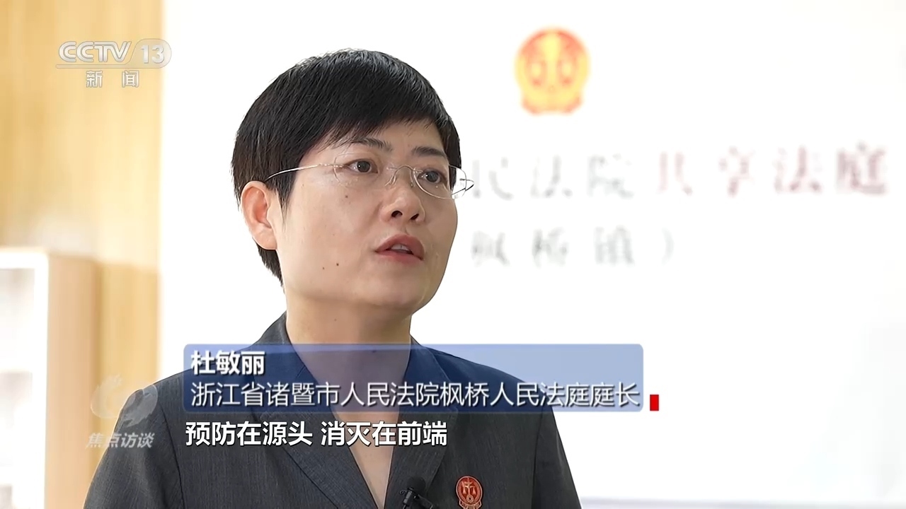 浙江省諸暨市人民法院楓橋人民法庭庭長杜敏麗:“把后端力量移到了前端,把更多矛盾糾紛預(yù)防在源頭、消滅在前端,后面的訴訟相當(dāng)于案件量也慢慢減少。”
