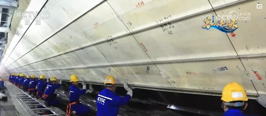 總臺(tái)央視記者 李琳:我現(xiàn)在就來(lái)到了一艘正在建造的LNG運(yùn)輸船最核心的液貨艙部分,您看我腳下這種銀光閃閃的鋼板就是能夠承受-163℃的殷瓦鋼,這種薄如紙片的鋼材在2017年以前是不能實(shí)現(xiàn)國(guó)產(chǎn)的。