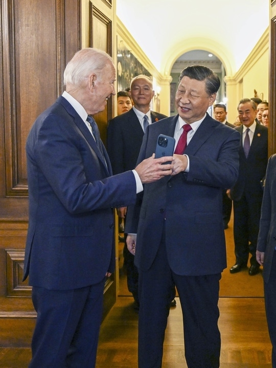 當?shù)貢r間11月15日中午,美國舊金山郊外的斐洛里莊園,習近平主席結束同美國總統(tǒng)拜登的晤談,出席拜登總統(tǒng)舉行的宴會。拜登在手機上展示1985年習近平在擔任正定縣委書記時訪問舊金山的一張照片。