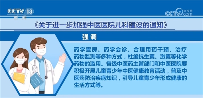 ?????? 央視網(wǎng)消息:國(guó)家中醫(yī)藥管理局近日發(fā)布了《關(guān)于進(jìn)一步加強(qiáng)中醫(yī)醫(yī)院兒科建設(shè)的通知》,就加強(qiáng)中醫(yī)醫(yī)院兒科建設(shè)提出相關(guān)舉措,以充分發(fā)揮中醫(yī)藥在保障兒童健康中的重要作用。