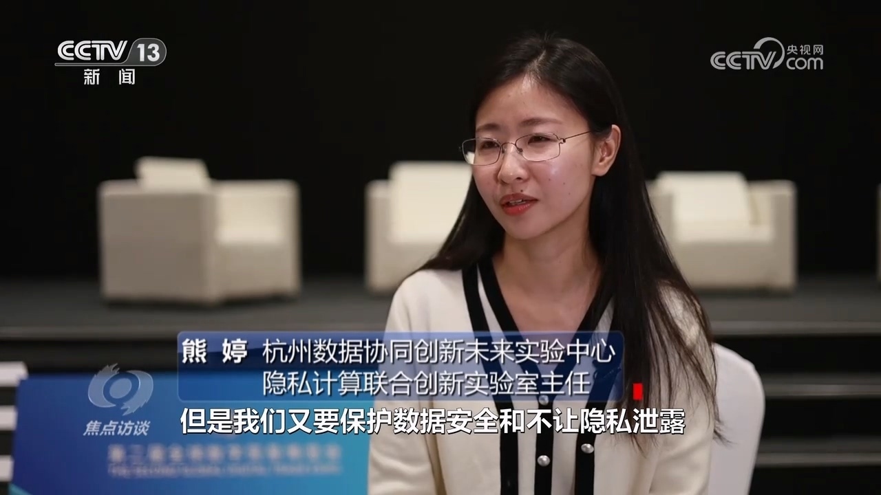 杭州數(shù)據(jù)協(xié)同創(chuàng)新未來實驗中心隱私計算聯(lián)合創(chuàng)新實驗室主任熊婷:“我們要加速數(shù)據(jù)要素快速的價值釋放,但是又要保護(hù)數(shù)據(jù)安全,不讓隱私泄露,現(xiàn)在天然就存在著一定的互相制約,我們怎么解決這個問題?隱私計算實際上是用密碼學(xué)、各種技術(shù)讓數(shù)據(jù)不拿出去,但是又能使用到數(shù)據(jù)的價值。要用各種技術(shù)手段、前沿技術(shù)保護(hù)自己的數(shù)據(jù),安全合規(guī)的使用數(shù)據(jù)。”