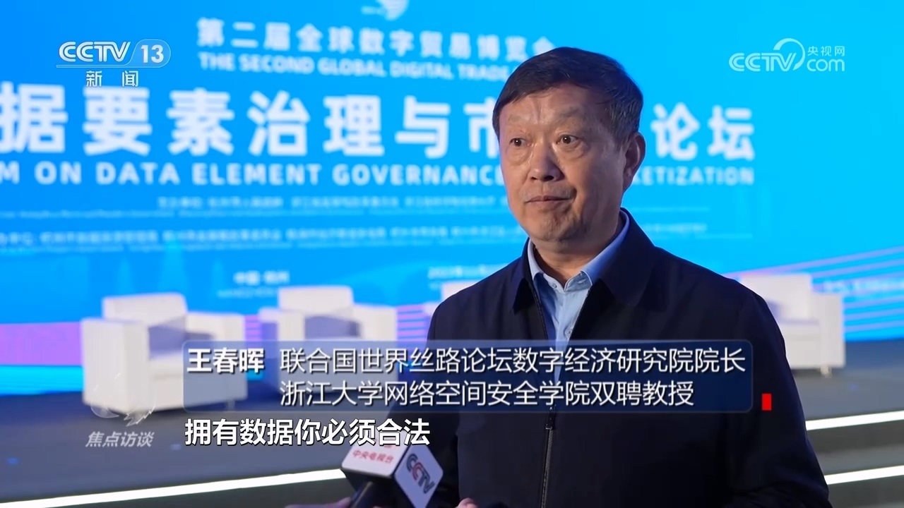 聯(lián)合國世界絲路論壇數(shù)字經(jīng)濟(jì)研究院院長、浙江大學(xué)網(wǎng)絡(luò)空間安全學(xué)院雙聘教授王春暉:“一個是法律層面的清晰,一個是經(jīng)濟(jì)方面的清晰,就是擁有數(shù)據(jù)必須合法,不能違法擁有數(shù)據(jù),擁有數(shù)據(jù)合法的情況下,可以加工利用,發(fā)揮對數(shù)據(jù)的整個價值的利用?!?/p>