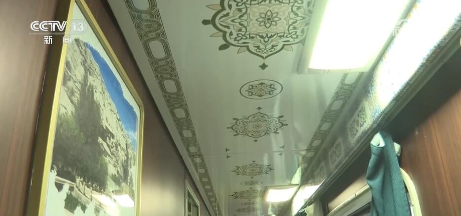 “阿克蘇號”作為助推新疆經(jīng)濟和旅游業(yè)發(fā)展的特色品牌列車,車上的軟硬件設施都獨具特色。每節(jié)車廂都裝飾有獨具新疆地域特色的人文景觀、民俗風情的圖文介紹,讓旅客能感受到濃郁的新疆特色。