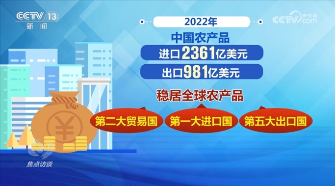 數(shù)據(jù)顯示,2001年至2022年,中國農(nóng)產(chǎn)品貿(mào)易額年均增長12.6%,農(nóng)產(chǎn)品出口額年均增長9.1%,進口額年均增長15.4%。2022年,中國農(nóng)產(chǎn)品進口2361億美元,出口981億美元,穩(wěn)居全球農(nóng)產(chǎn)品第二大貿(mào)易國、第一大進口國、第五大出口國。糧食安全的穩(wěn)定性,離不開農(nóng)業(yè)供應鏈的安全可控。