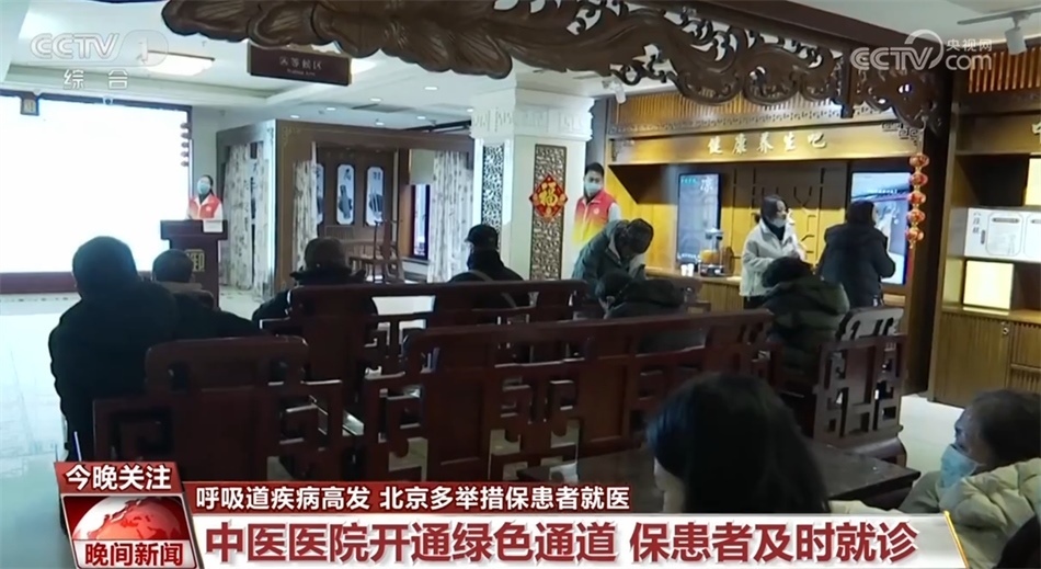 中醫(yī)醫(yī)院也在應(yīng)對(duì)呼吸道疾病就診高峰方面推出多項(xiàng)舉措。在北京市鼓樓中醫(yī)醫(yī)院,記者在候診區(qū)看到,醫(yī)務(wù)人員正在給現(xiàn)場(chǎng)候診和取藥的患者進(jìn)行預(yù)防流感的醫(yī)學(xué)講解。醫(yī)院還對(duì)有需求的老人開(kāi)通綠色通道,及時(shí)收入醫(yī)院治療。