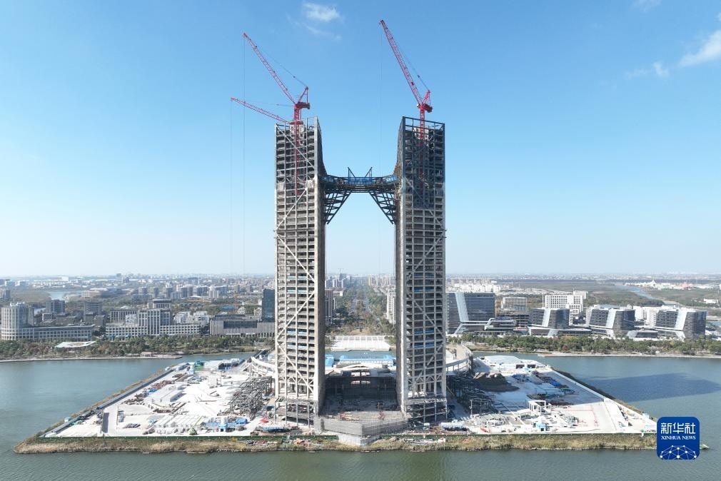 在上海,上海自貿試驗區(qū)臨港新片區(qū)在建的西島金融中心項目南北雙塔核心筒不久前封頂,未來將成為現代服務業(yè)開放區(qū)的重要產業(yè)載體和區(qū)域新地標……