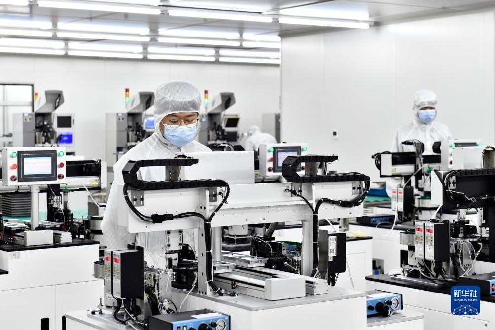 ?在山東省日照高新技術(shù)產(chǎn)業(yè)開發(fā)區(qū)智慧微電產(chǎn)業(yè)園,工作人員在生產(chǎn)濾波器(2023年6月29日攝)。新華社記者 郭緒雷 攝