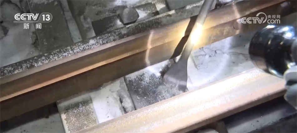 我在車(chē)站里看到不僅有給列車(chē)編組的司機(jī)、調(diào)度員,我還看到在鐵路的道岔還有很多工作人員正在做一些積雪清掃還有除冰的工作。我們可以湊近看一下,可以看到道岔這里現(xiàn)在是被凍住了,已經(jīng)沒(méi)法推動(dòng)這個(gè)鐵軌,而這的空間又非常小,所以只能靠這樣的小鏟子一點(diǎn)點(diǎn)鏟,才能把這塊兒的積雪和冰給清干凈。