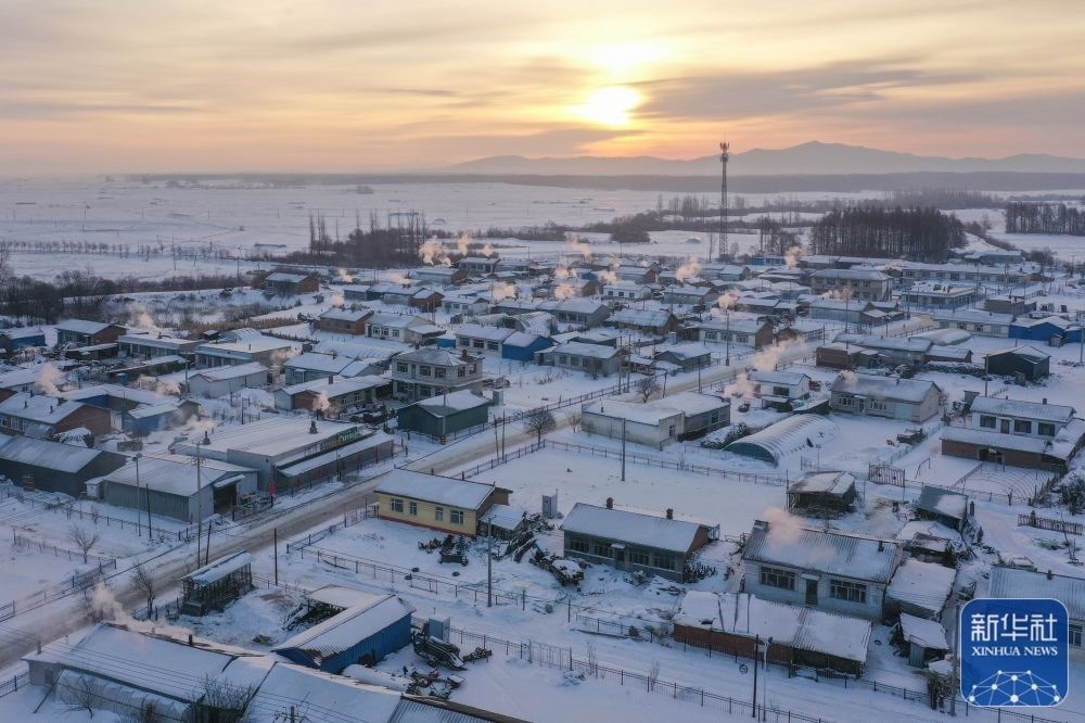 這是1月1日拍攝的黑龍江省尚志市老街基鄉(xiāng)龍王廟村日出景觀(無人機照片)。新華社發(fā)(宋洋 攝)
