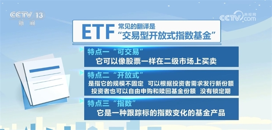 央視網(wǎng)消息:在2023年的資本市場上,有一類產(chǎn)品受到了投資者關(guān)注,從產(chǎn)品的種類到規(guī)模都出現(xiàn)明顯增長,這就是ETF,也就是我們常說的“交易型開放式指數(shù)基金”。那么什么是指數(shù)基金,ETF又具體包含哪些內(nèi)容呢?我們來了解一下。?